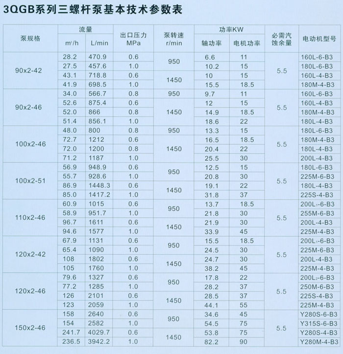 三螺桿泵適用于輸送燃料油、潤(rùn)滑油、液壓油、重油、瀝青及其它類似油的潤(rùn)滑性液體。