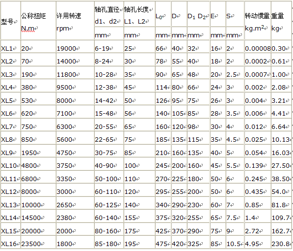 XL型星形彈性聯(lián)軸器的基本尺寸和參數(shù):