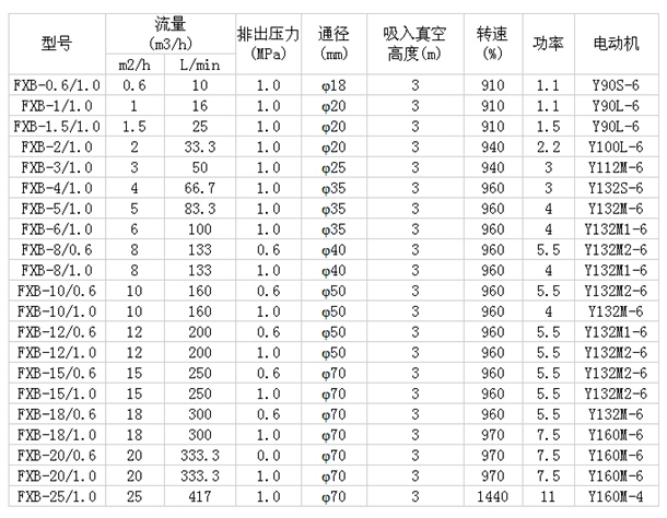 FXB型系列不銹鋼齒輪泵性能參數(shù)表